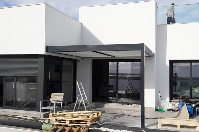 Eerst ontworpen en geproduceerd bij ons in de werkplaats. Vervolgens met eigen personeel en gereedschap in Spanje opgebouwd en verder geassembleerd. Zonder twijfel gaan we voor u de grens over! Wilt u ook zonwering laten maken en monteren? Laat ons u helpen. Van ontwerp tot de technische uitvoering staan we voor u klaar!