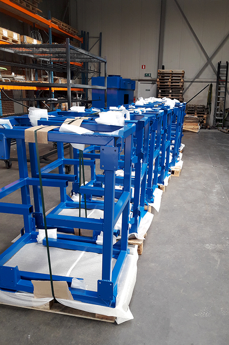 Snel spullen vervoeren op de werkplaats gaat gemakkelijk met (door pallets verstelbare) roltafels!